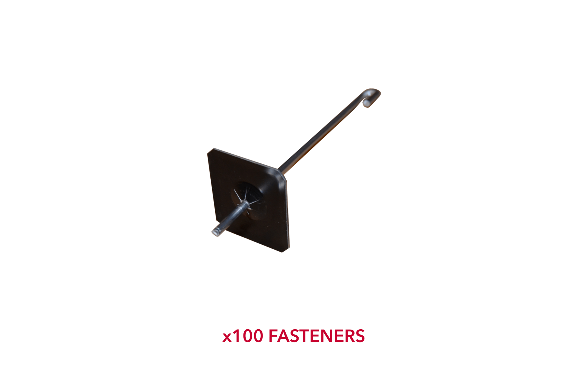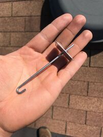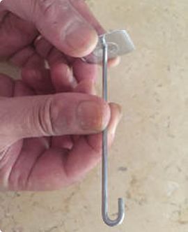 First, assemble the two parts of the fastener. Insert the straight portion of the hook into the hole in the washer. The silver side of the washer should be inserted first ...